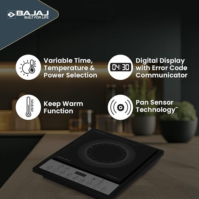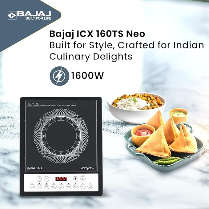 Bajaj ICX 160TS Neo Induction Stove | 1600 Watts | 9 Pre-Set Menus | Digital Display | Keep Warm Function | Variable Time, Power & Temperature Selection | 1 Yr Warranty 【Black】