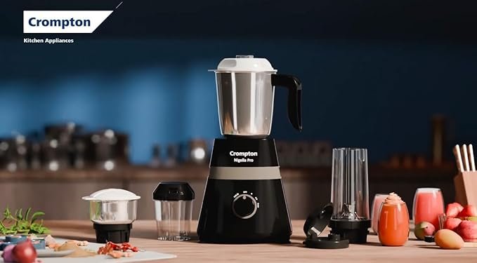 Crompton Nigella Pro 500W Mixer Grinder | 4 Jars (1.2L, 500ml, 400ml, 350ml) | 30 Min Continuous Grinding | Motor Vent-X Technology | Anti-Skid Base | Black | Life Active Series