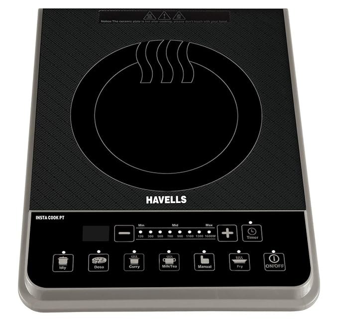 Havells Alloy Steel Insta Cook PT 1600-Watt Induction Cooktop (Assorted Color), black